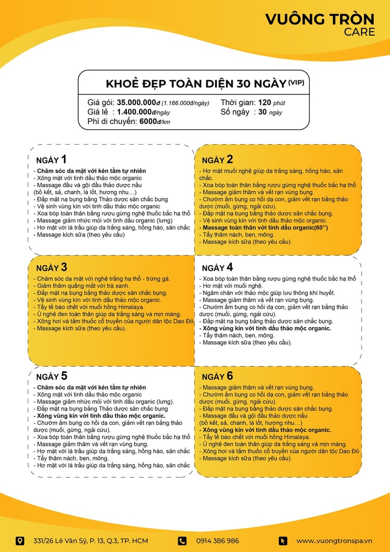 Liệu trình được thiết kế khoa học từ việc đúc kết kinh nghiệm hơn 12 năm kinh nghiệm và tham khảo ý kiến của bác sĩ chuyên khoa cùng góp ý của hàng nghìn mẹ sau sinh.